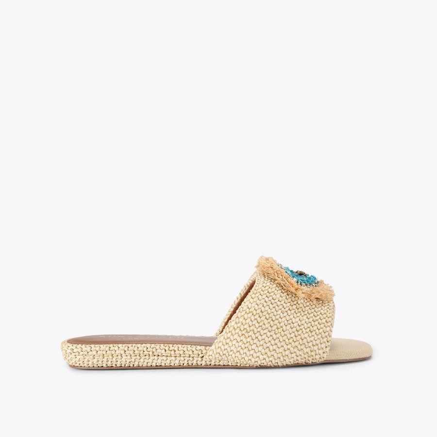 EYE FLAT SANDAL Beige Raffia Slip On Sandals by KURT GEIGER LONDON Very well made.