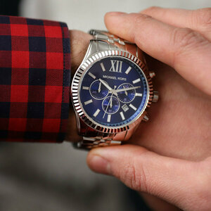 New Michael Kors MK8280 Lexington Chronograph Navy Dial Silver Tone Men s Watch eBay Very well made.