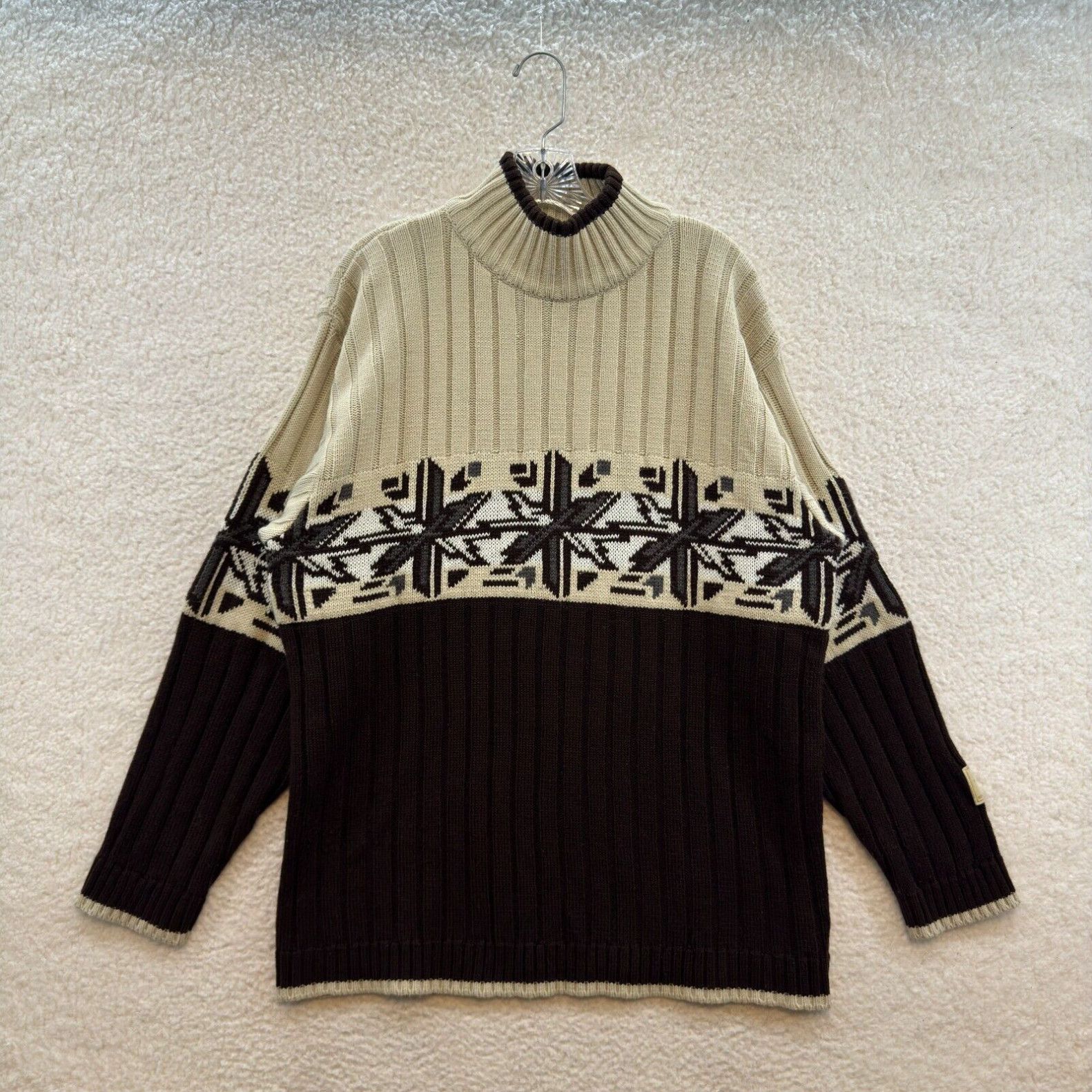 Vtg Southpole Sweater Men s XL Cream Brown Mock Neck Pullover Acrylic Knit Y2K Very well made.
