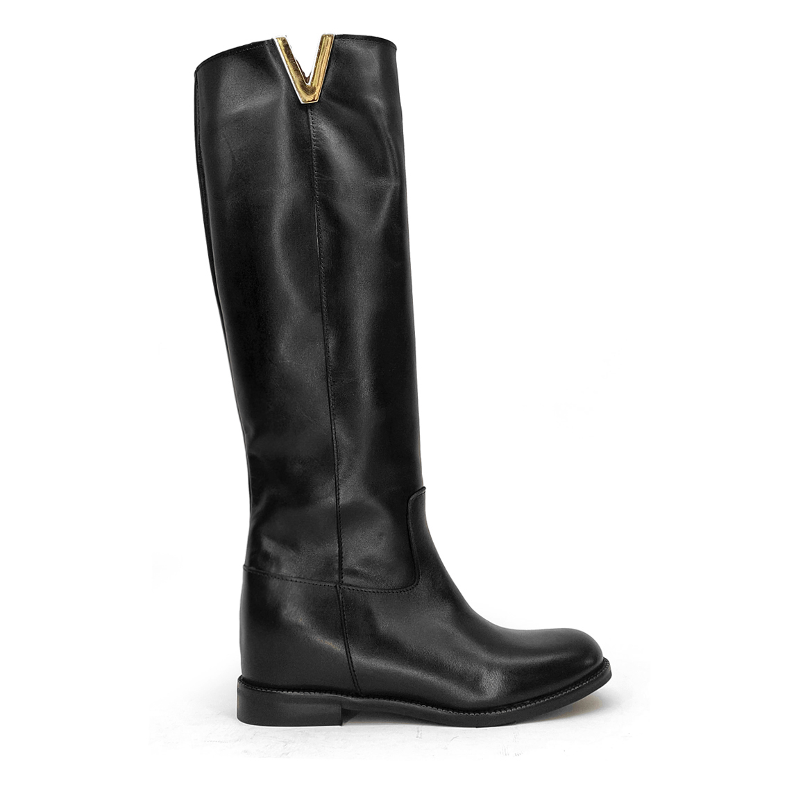 Stivali alti Mila con zeppa interna e V dorata Very well made.