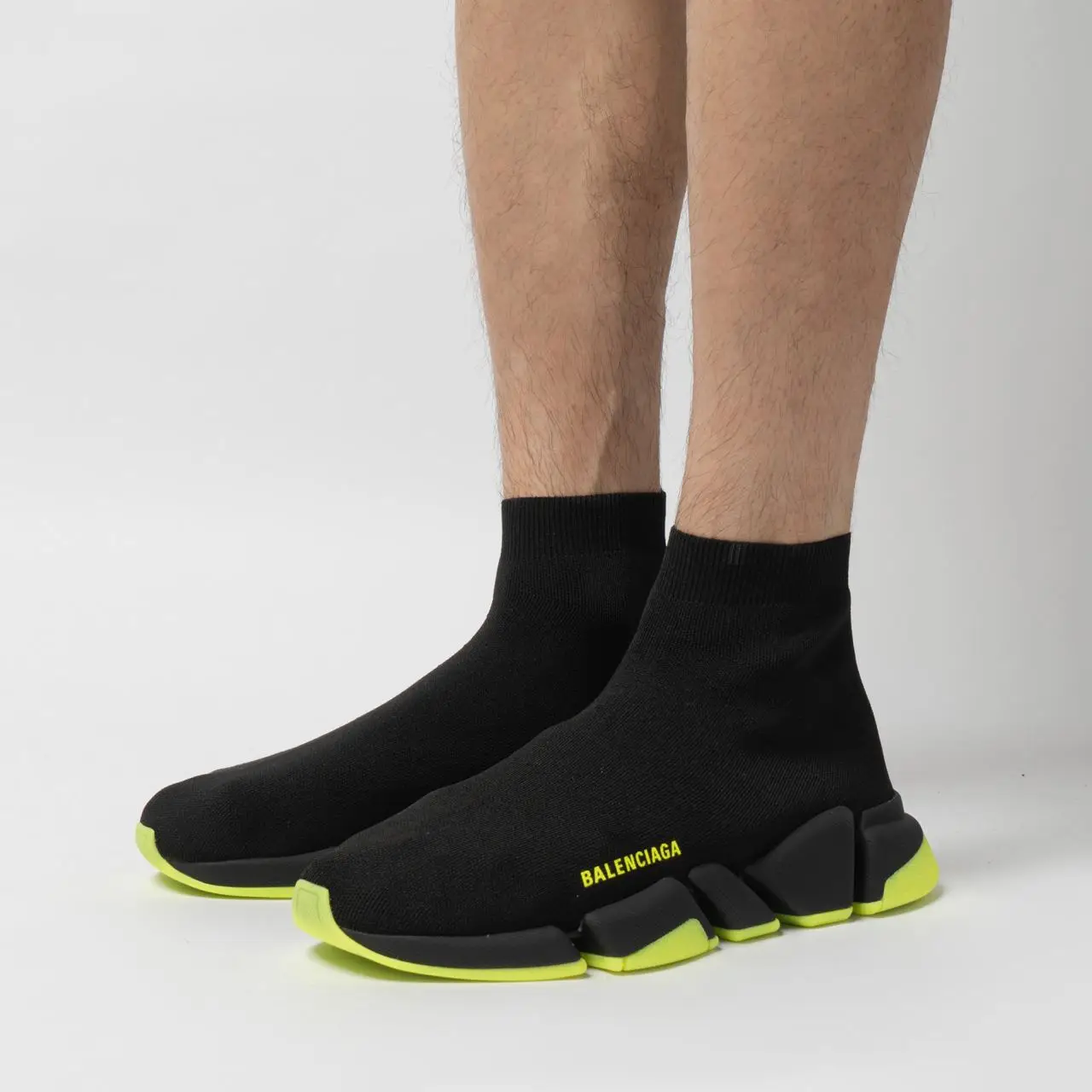 Balenciaga Black Yellow Knit Fabric Speed High Top Sneakers 38 STYLISHTOP Very well made.