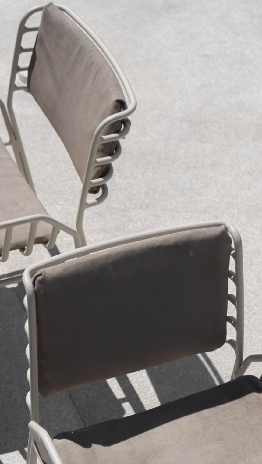 Fixo – espuma D30 Soft revestida com manta de poliéster. / Encostos: Solto – espuma fibra siliconizada revestida com manta de poliéster. / Pés: Pés em aço carbono nos acabamentos: lacas focas. / Partes Desmontáveis: Braços e pés.