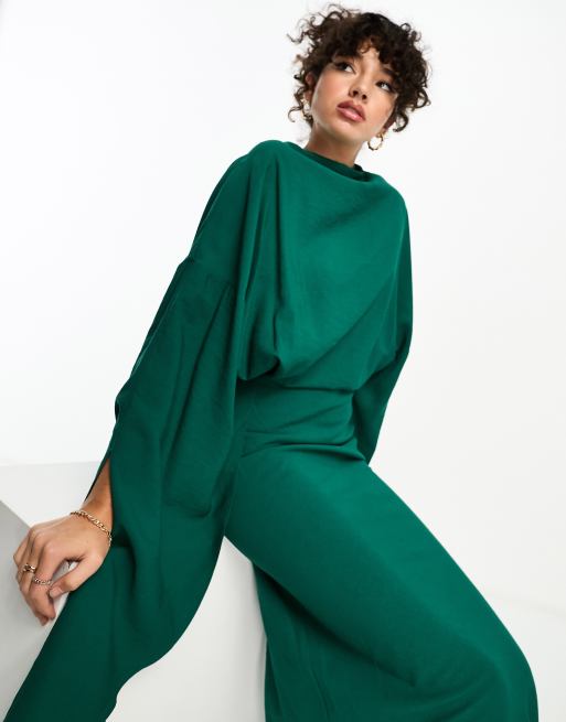 ASOS DESIGN Tall plunge neck dropped shoulder pencil midi dress in forest green Very well made.